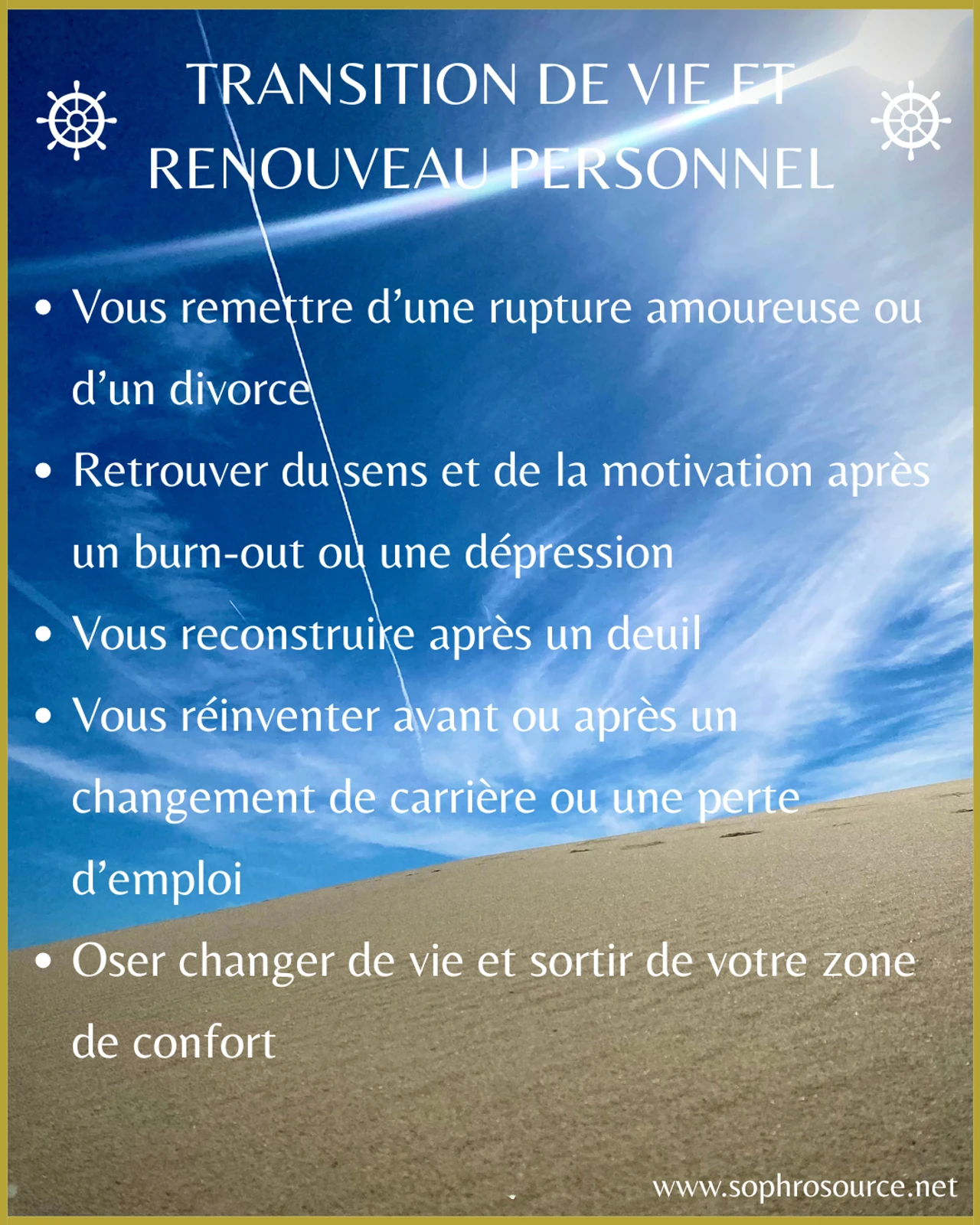 Grâce à la Sophrologie et à l'Hypnose, je vous aide en quelques mois, à transformer vos questionnements et vos doutes, en Décisions éclairées et Actions concrètes.